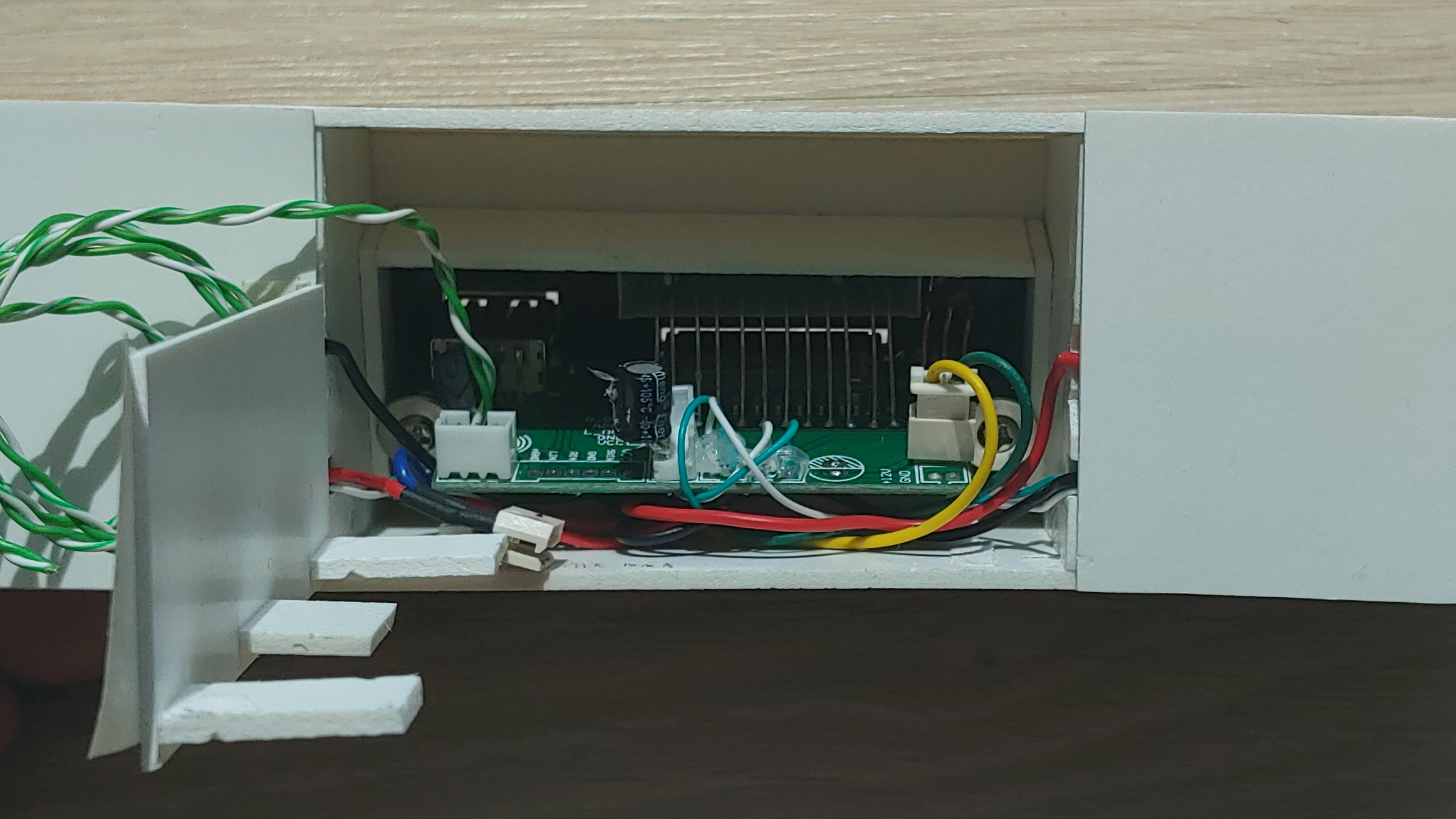 스펀지를 붙이지 않은 뒷부분은 배터리를 넣을 공간이라 남겨둔 것으로, 스펀지를 붙인 뒤판을 먼저 붙이고 그 뒤쪽에 배터리를 세워서 안착시킬 계획입니다.