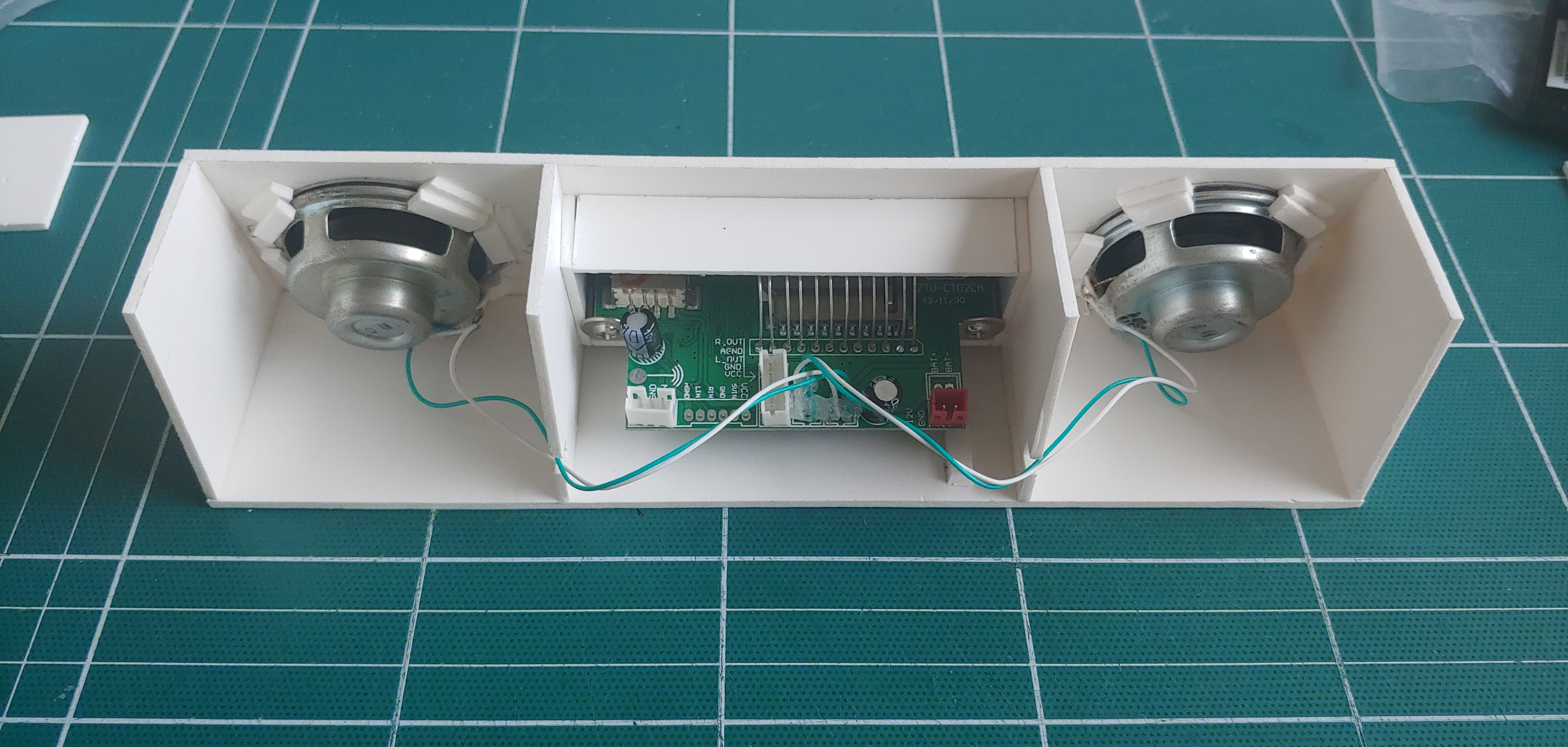 적당한 크기에 스피커의 울림통을 고려하고자 가로 200mm 세로 50mm로 크기를 잡고, 울림통을 분리하였습니다.
