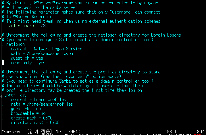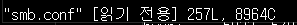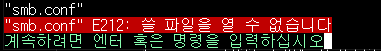 예를들어 아래 그림처럼 삼바 conf파일을 수정하기위해 무심결에 vi smb.conf로 하다가 보면, 맨 밑에 경고가 표시됩니다.