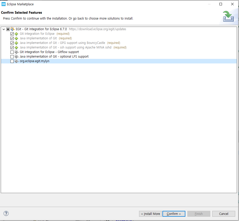 여기에 Egit이 보이면 Install버튼을 클릭하여 설치를 진행합니다.